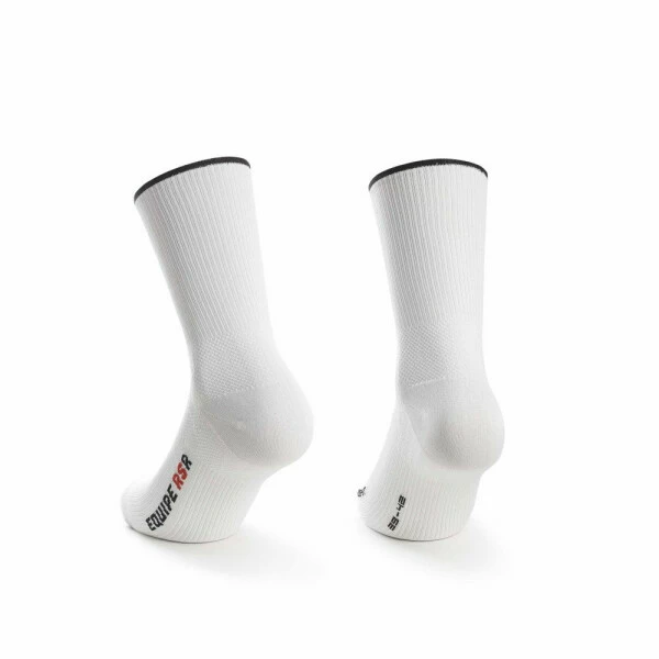 Dafür hat Assos InfraRed-Garn verwendet, welches dank seines hohen Elastomeranteils durchweg für Kompression sorgt und zusammen mit Lycra entlang des Fußes, Knöchels und Unterschenkels einen festen, stützenden Halt bietet. Speziell für das Fußgewölbe wurde ein Ripp-Band entwickelt, das es umwickelt und so noch mehr Halt sowie erhöhte Atmungsaktivität bietet. Das kontrastierende Band entlang des Fußrückens sorgt für ein sauberes Gesamtbild.