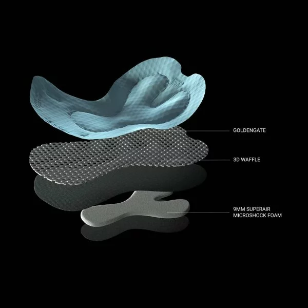 Wir wollten eine allumfassende Lösung für jeden Tag. Das Prinzip ist einfach, die Umsetzung gestaltete sich aber umso schwerer. Um unseren Anforderungen gerecht zu werden, haben wir die ersten UMA GT entworfen, die auf Technologie beruhen, die von Modell zu Modell weitergegeben wird, einschließlich einer überarbeiten AEPD-Passform und der Trägeraufhängung. Auch das Polster haben wir überarbeitet und die Fläche reduziert, die Kühlung verbessert und ihm mithilfe des Odor Control Top Sheet Tex in Sugar Blue einen ästhetischen Touch verpasst.