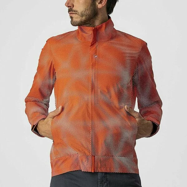 Dies ist die Castelli Jacke zum Pendeln – gemacht, um maximale Funktion auf dem Bike zu liefern und dann gut auszusehen, wenn Sie zur Arbeit kommen.|Wir wollten eine Jacke, die maximale Sichtbarkeit während der nächtlichen Pendelfahrten bietet, aber nicht lächerlich aussieht mit allen möglichen silbernen Reflexbändern und -streifen, wenn man im Büro ankommt. Darum bringen wir einen fast unsichtbaren Reflexdruck auf der gesamten Oberfläche der Jacke an. Man sieht es nicht wirklich, wenn man tagsüber fährt oder die Jacke abseits des Bikes trägt, aber nachts reflektiert die Jacke ein unverwechselbares Muster, um auf sich aufmerksam zu machen.|Wir haben es nicht bei der Reflexwirkung belassen. Die 20.000 mm Wassersäule bedeutet, dass kein Wasser durchkommt. Und die 20.000 MVTR-Atmungsaktivität bedeutet, dass eine gute Menge an Feuchtigkeit entweichen kann. Aber es sind die Belüftungsdetails, die diese Jacke auszeichnen: Es gibt eine Manschette an der Taille, die Sie schließen können, um gegen den Wind abzudichten, oder offen lassen, um etwas Luft von unten hereinzulassen, damit Sie kühler bleiben. Diese innere Manschette ermöglicht es uns, eine Jacke herzustellen, die unten gerade fällt – ein viel cleanerer und raffinierterer Look als eine Jacke mit Falten, die von einem innenliegenden Gummiband herrühren.