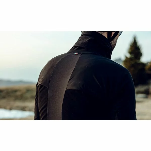 Die Rückenmitte und die Taschenbereiche profitieren von einer Mischung aus Bio-Polyamid und supraleitender Graphen-Garn-Technology™, um überschüssige Körperwärme vom Oberkörper wegzuleiten. Belüftungsöffnungen auf der Rückseite unterstützen zusätzlich den Abtransport überschüssiger Wärme und Feuchtigkeit. Seiteneinsätze aus einer doppellagigen Mischung aus UF Hybrid Shell Plus™ auf der Außenseite und UF-Air-Insulation™ auf der Innenseite runden das Teil ab.
