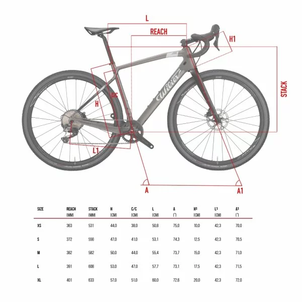 Der 60TON Karbon-Monocoque Rahmen des Jena wird in 5 Größen (von XS bis XL) gefertigt mit Geometrien, die ein hohes Maß an Komfort ermöglichen, ohne dabei auf die typische Reaktivität und die Performancemerkmale der Wettkampfräder aus dem Hause Wilier zu verzichten. Der etwas stärker geöffnete Steuerrohrwinkel sorgt für Qualität und Stabilität des Fahrverhaltens auch im anspruchsvollsten Gelände. Der Hinterbau hingegen wurde konzipiert, um besonders gut auf vertikale Belastungen zu reagieren und die meisten durch Bodenunebenheiten erzeugten Erschütterungen aufzufangen.
